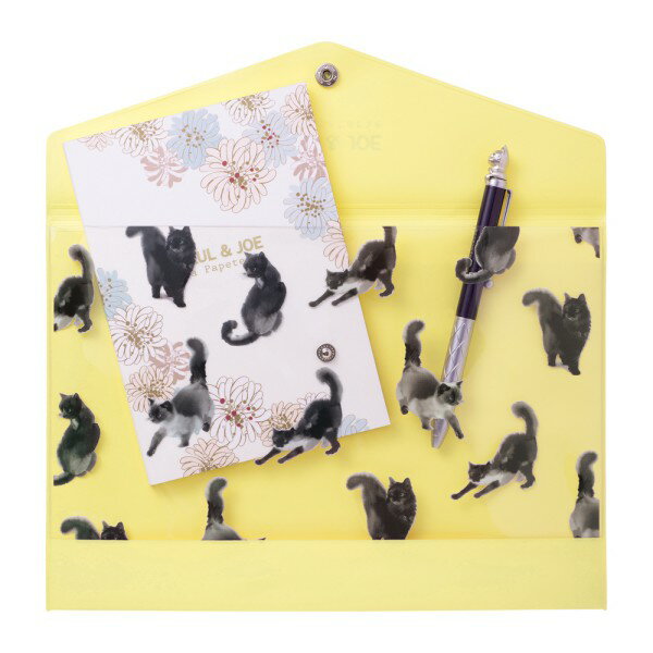 フラットケース ポールアンドジョー ステーショナリーケース A5 水墨画ネコ・レモンイエロー ポール&ジョー ラ・パペトリー マークス 猫
